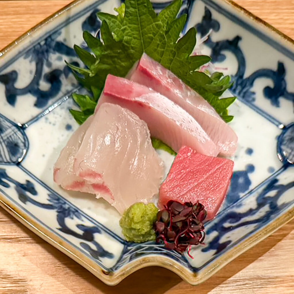 【造里】~鮮魚三種盛~ 鮪 鰤 鯛 造里醤油 あしらい